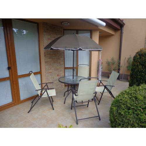 - Zahradní nábytek Bilbao se skládá ze 4 skládacích polohovicíh křesel,stolu a slunečníku